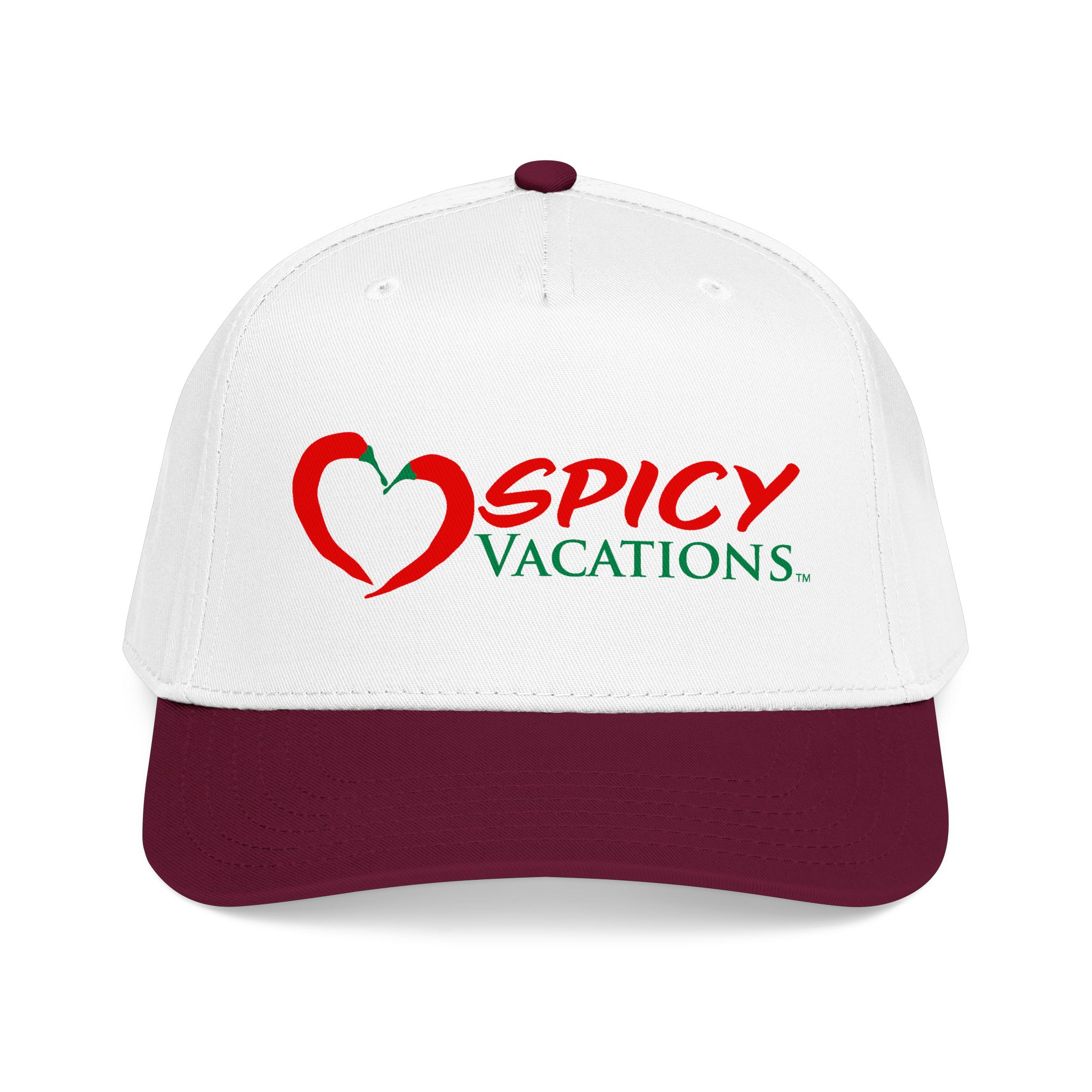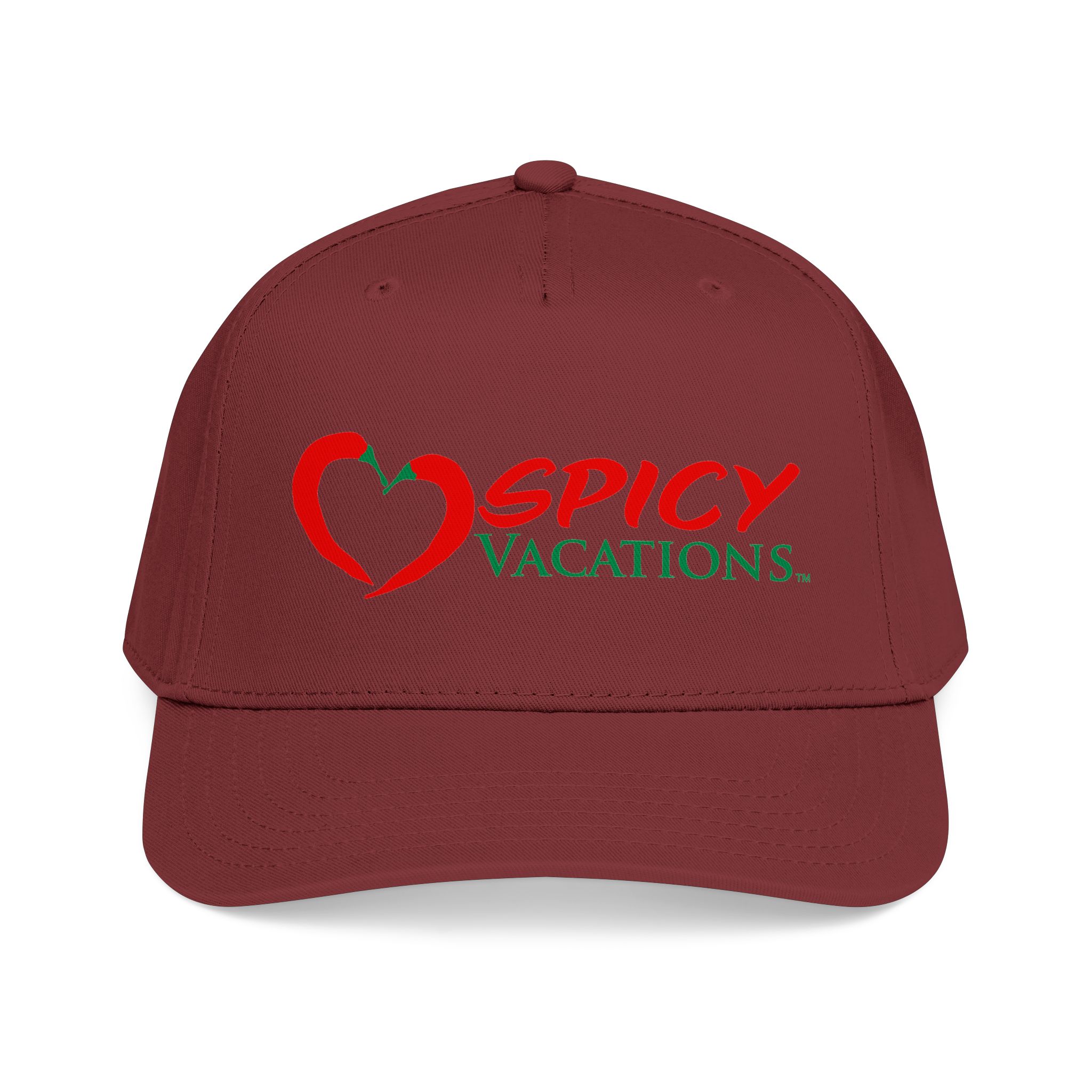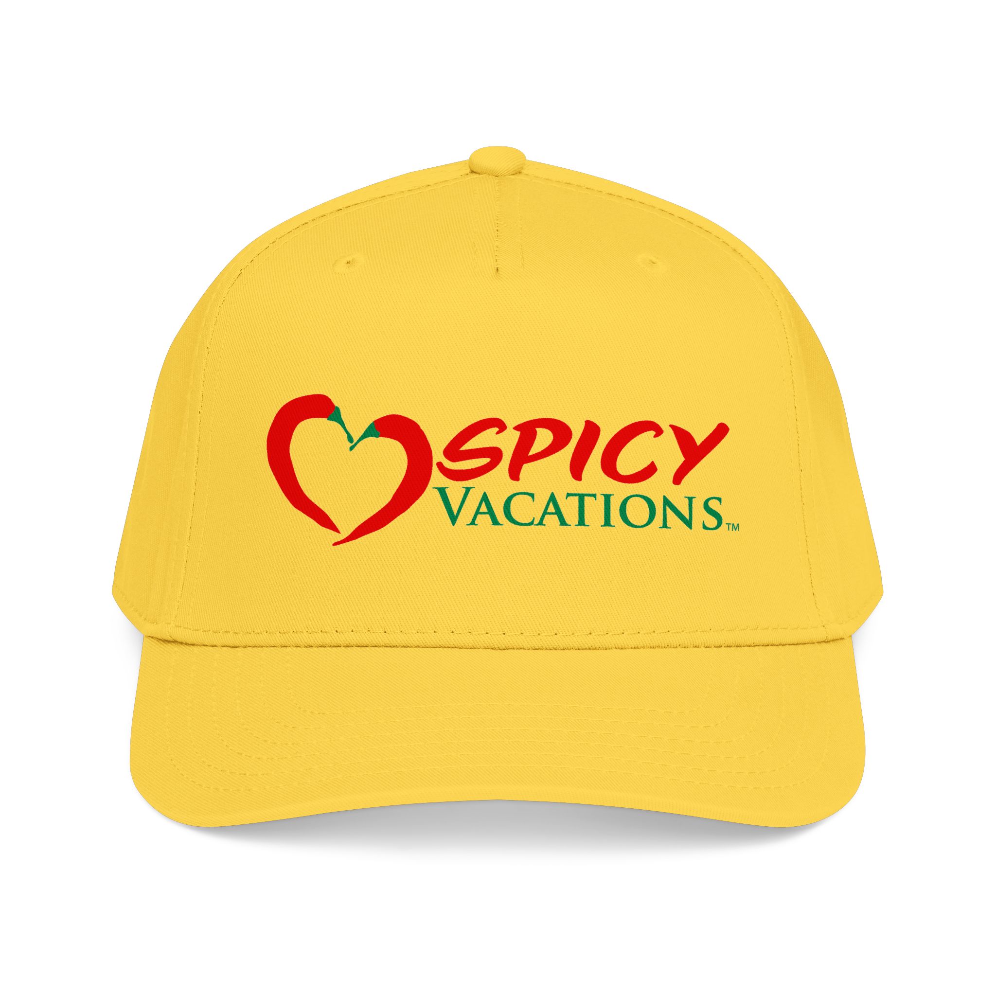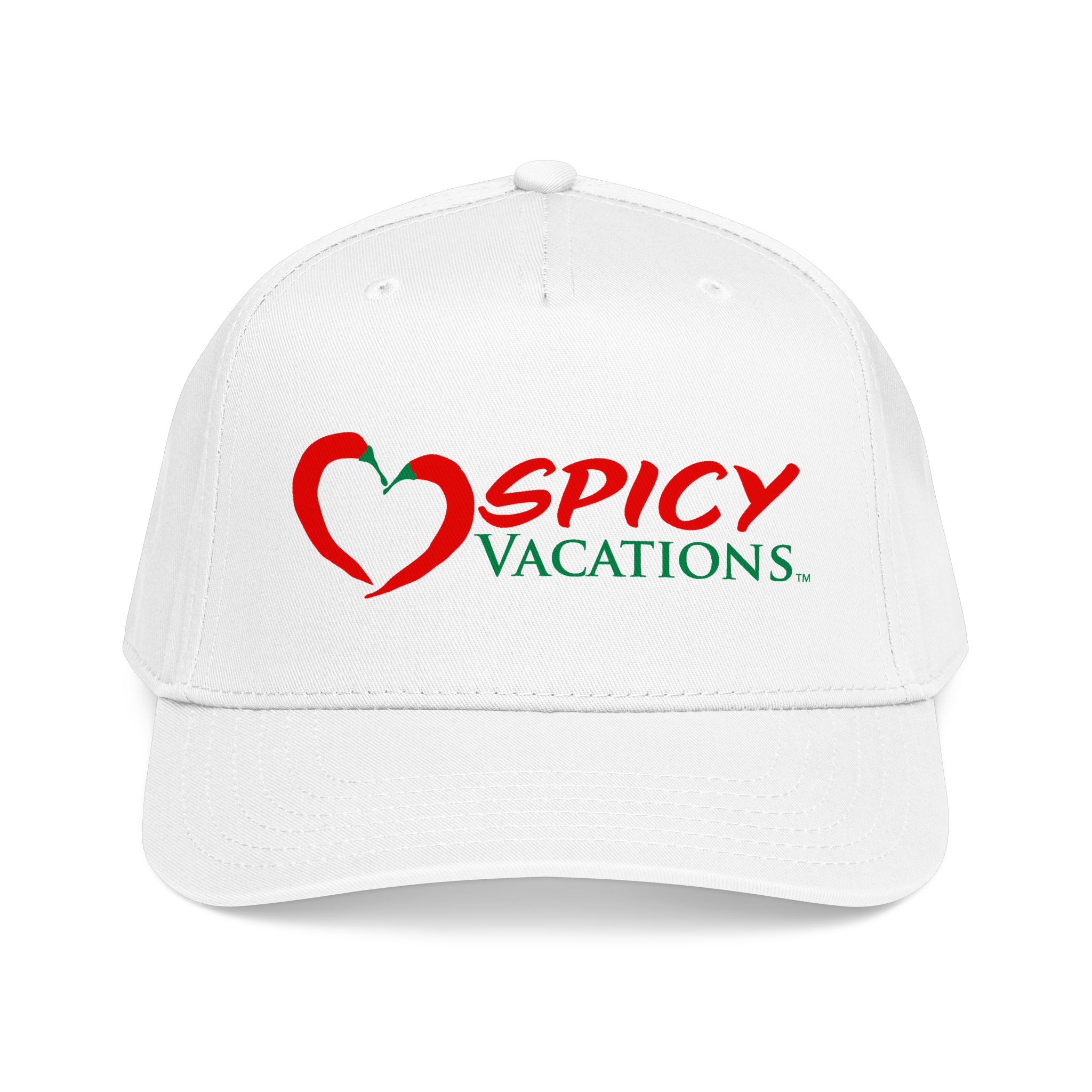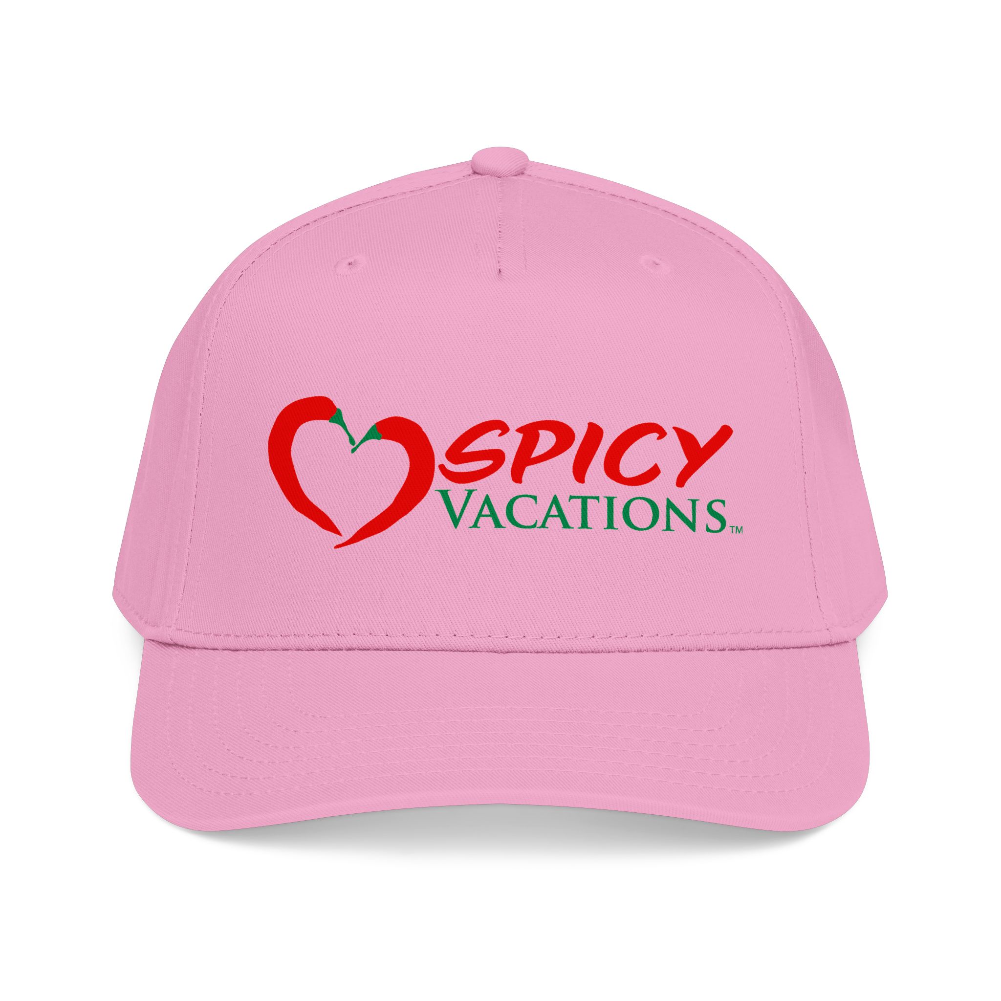 A matching fabric undervisor and sweatband give it a polished, intentional look, while the adjustable snap closure makes it easy to go from daytime adventures to late-night shenanigans. Six sewn eyelets keep things breathable when the sun’s out, the drinks are flowing, and the vibes are unmistakably Spicy Vacations.