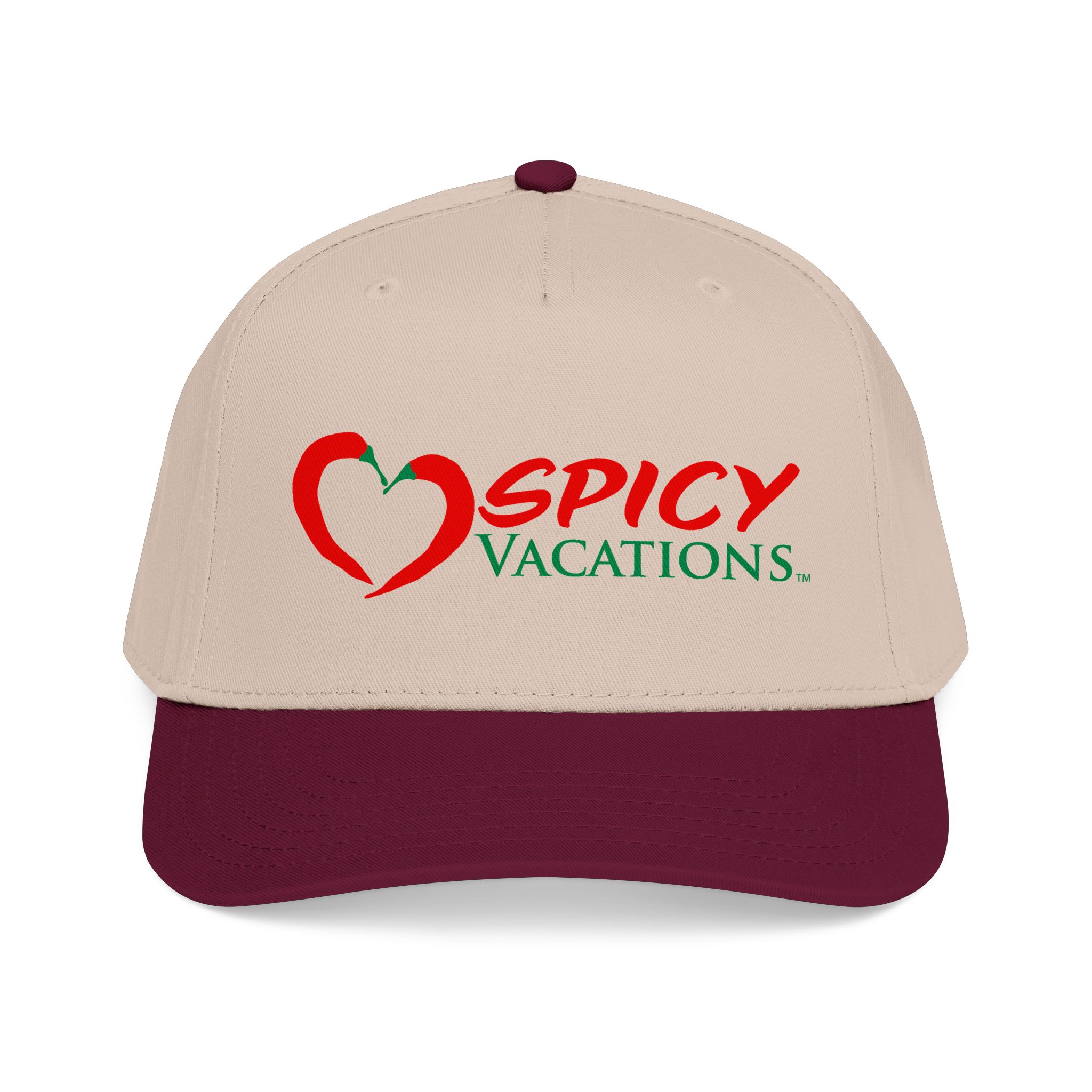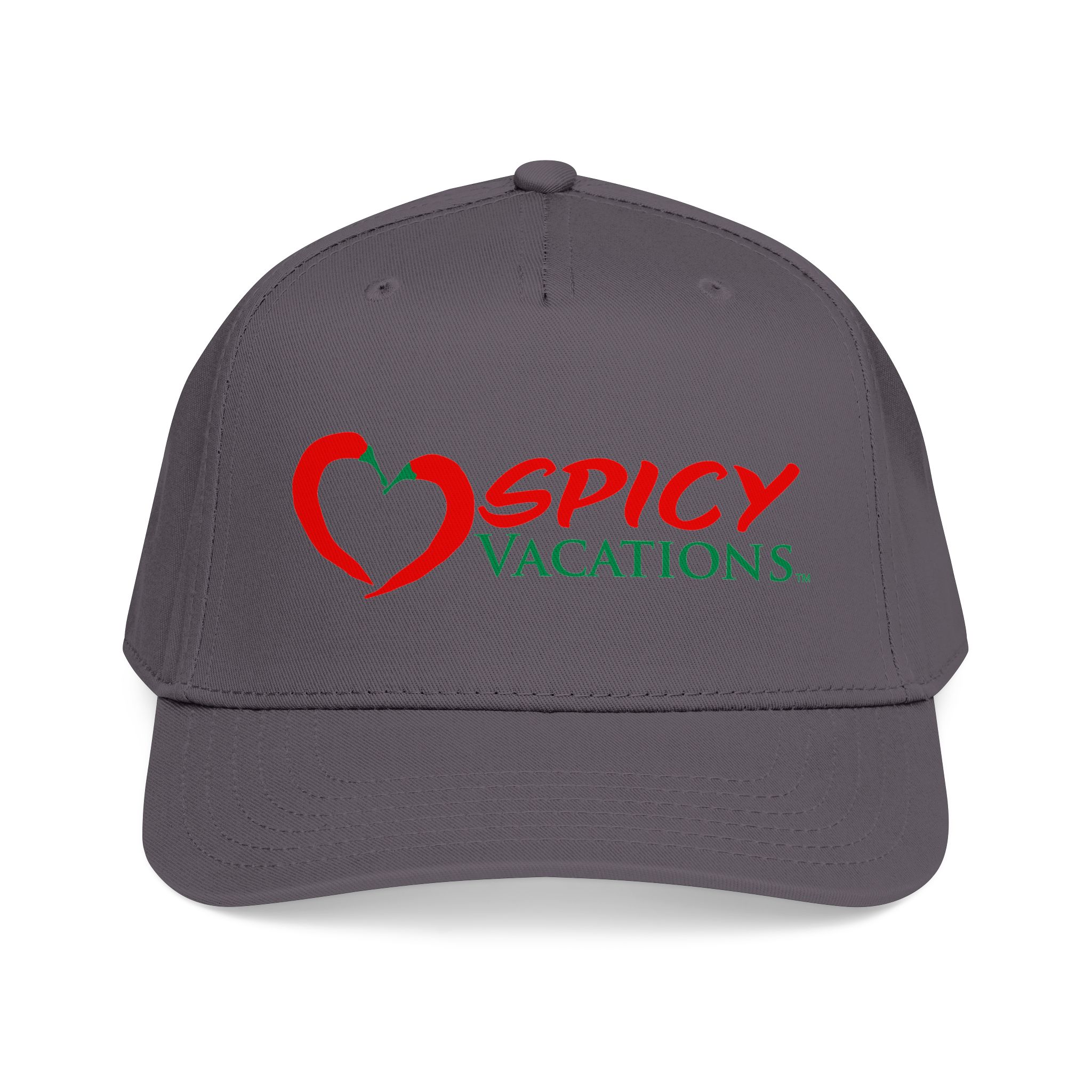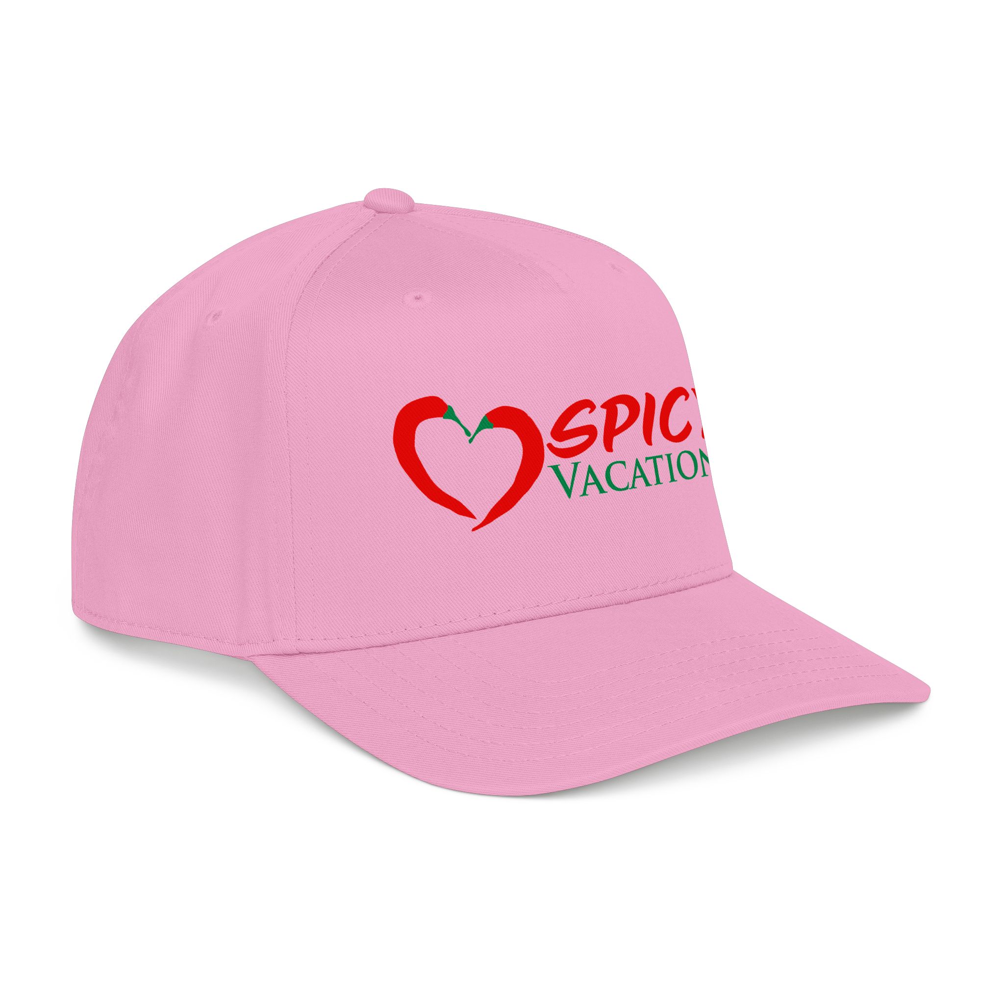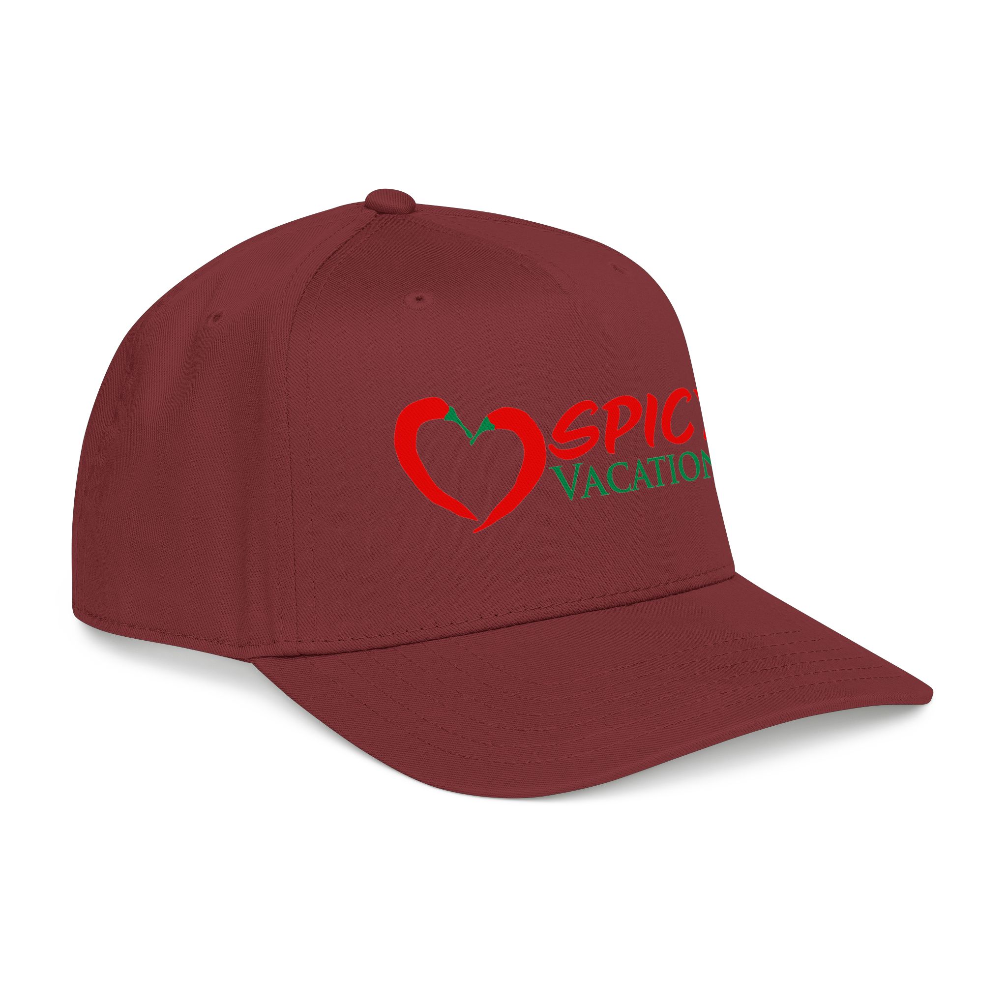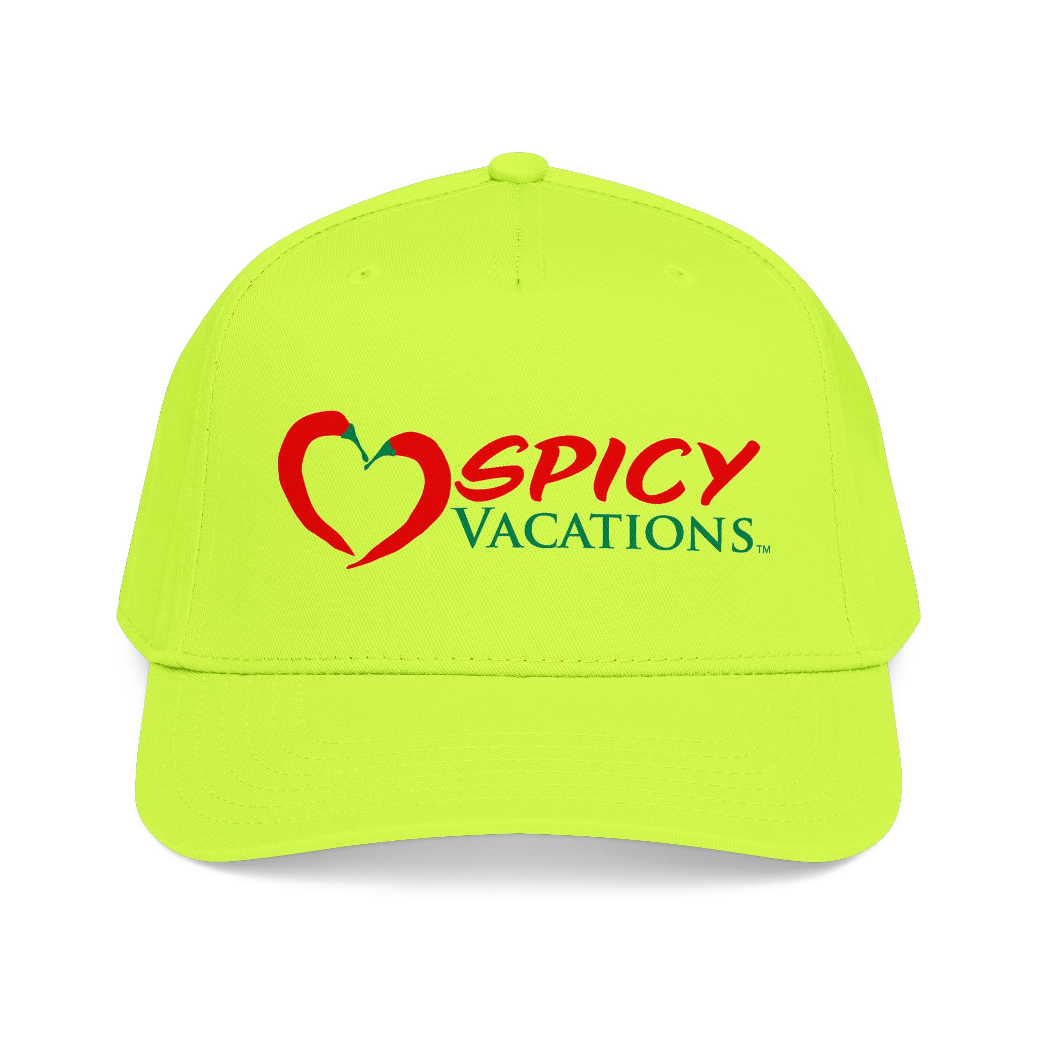 A matching fabric undervisor and sweatband give it a polished, intentional look, while the adjustable snap closure makes it easy to go from daytime adventures to late-night shenanigans. Six sewn eyelets keep things breathable when the sun’s out, the drinks are flowing, and the vibes are unmistakably Spicy Vacations.