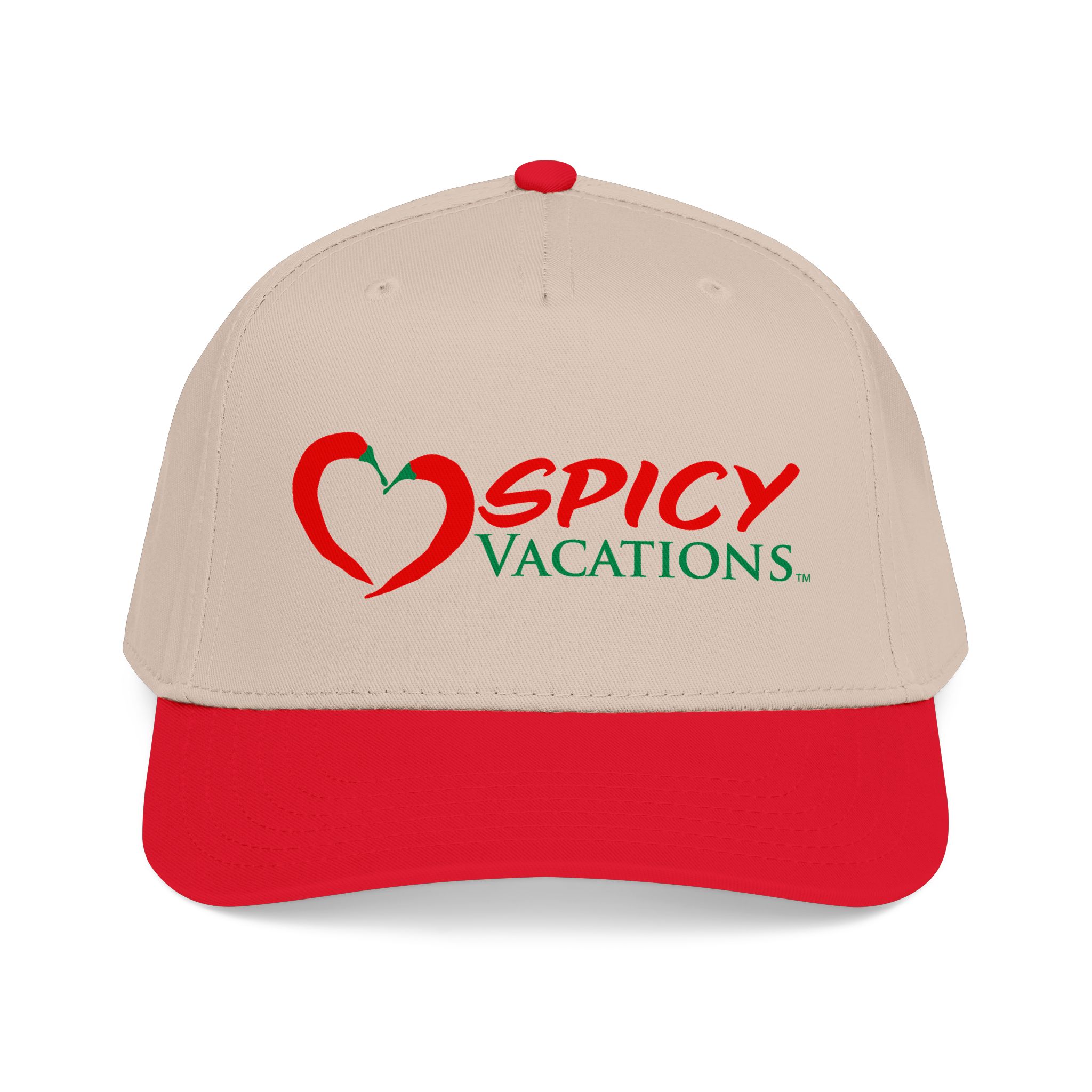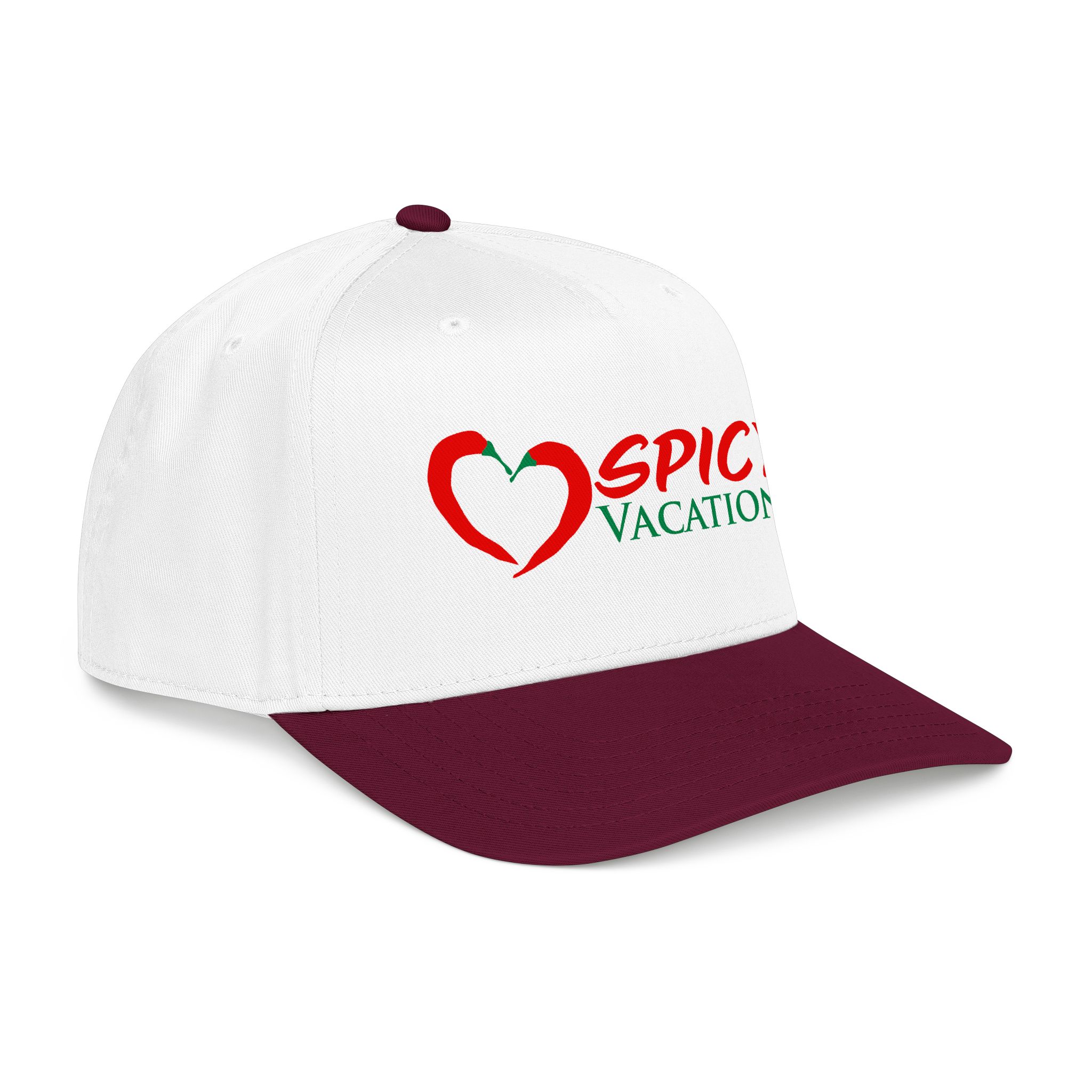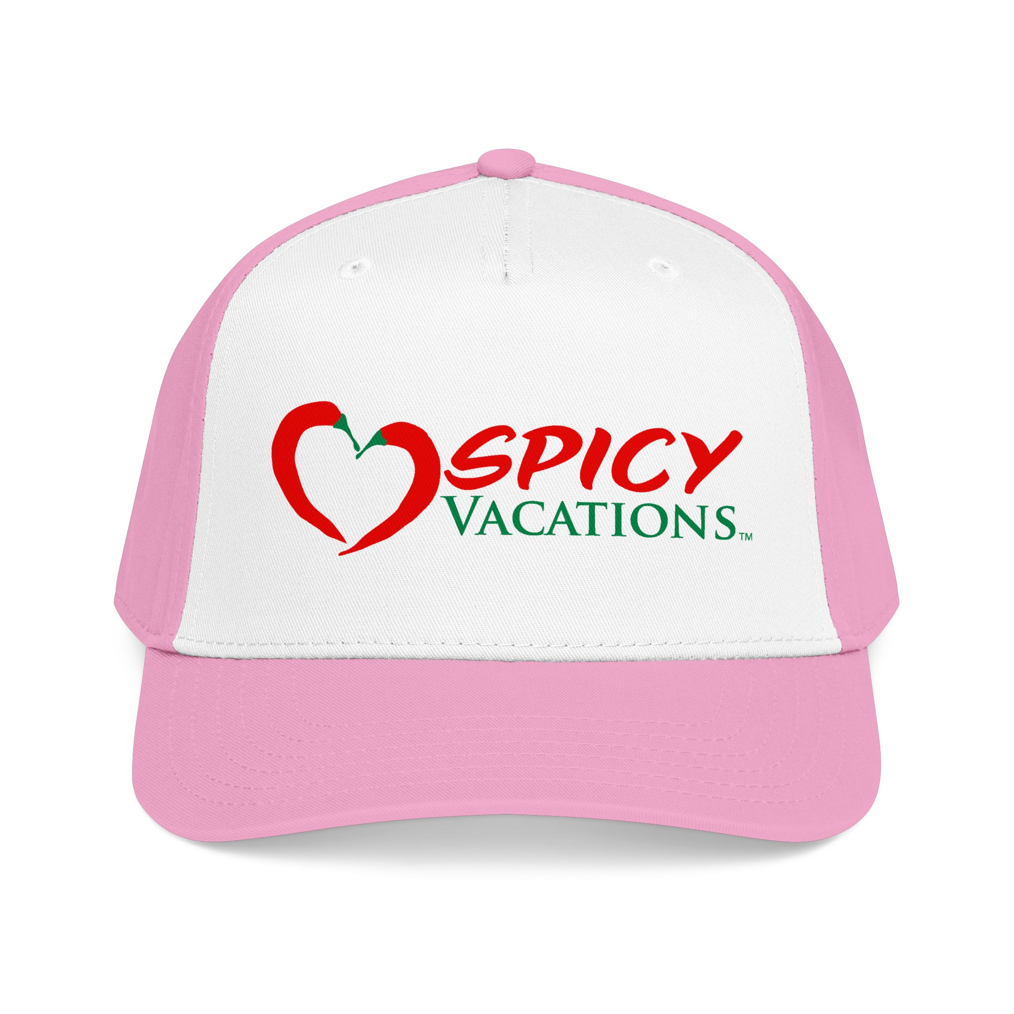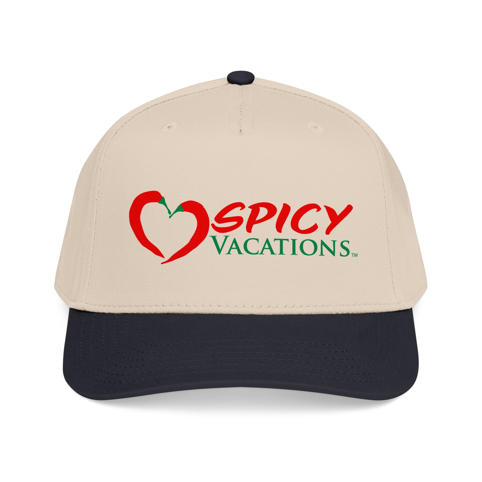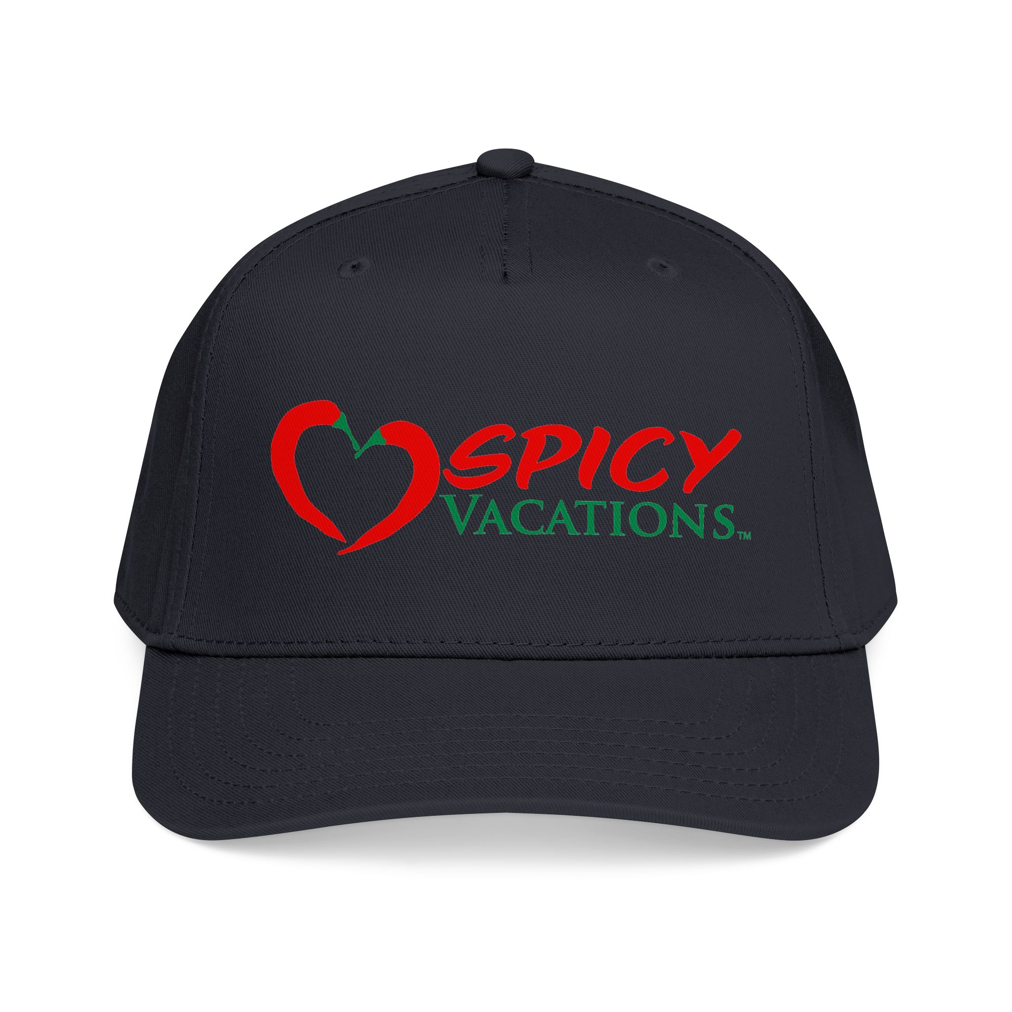 A matching fabric undervisor and sweatband give it a polished, intentional look, while the adjustable snap closure makes it easy to go from daytime adventures to late-night shenanigans. Six sewn eyelets keep things breathable when the sun’s out, the drinks are flowing, and the vibes are unmistakably Spicy Vacations.