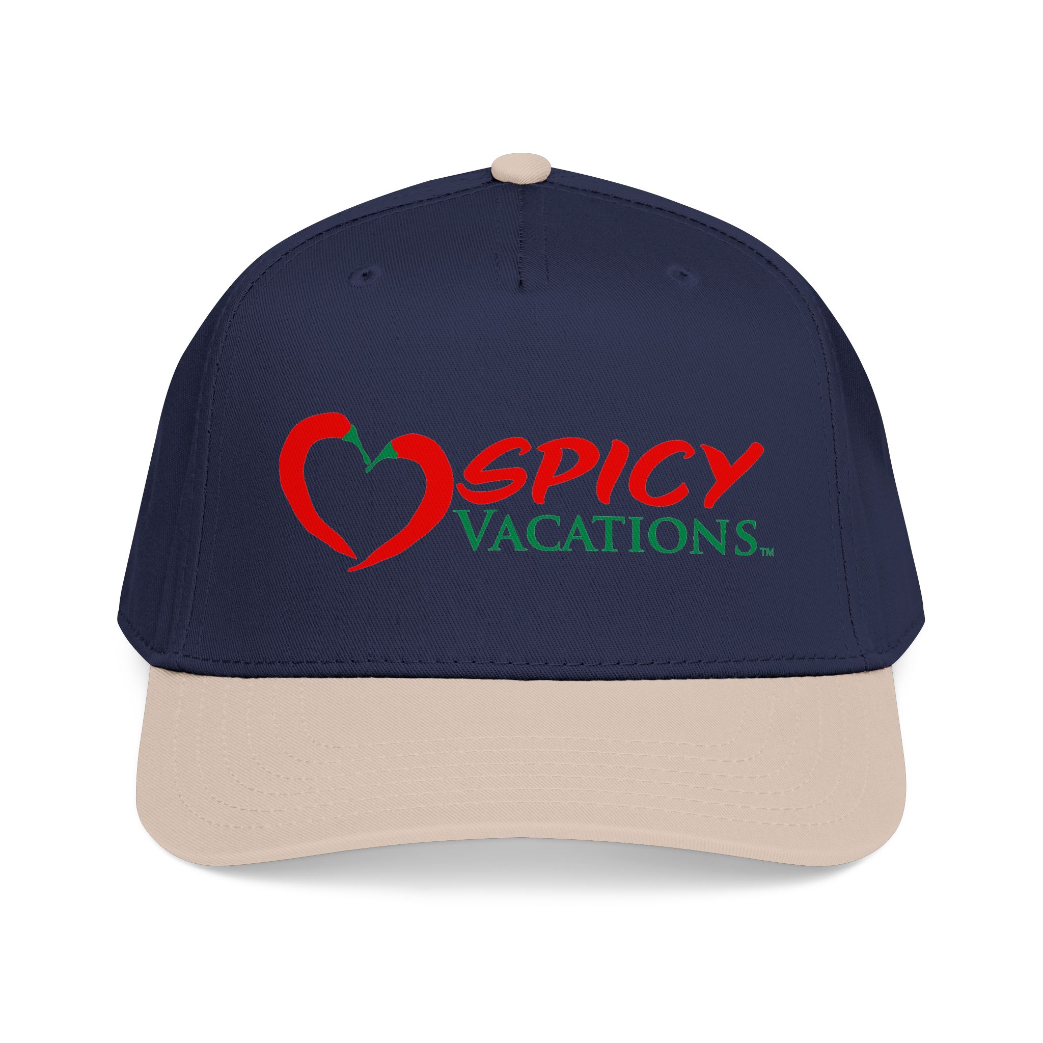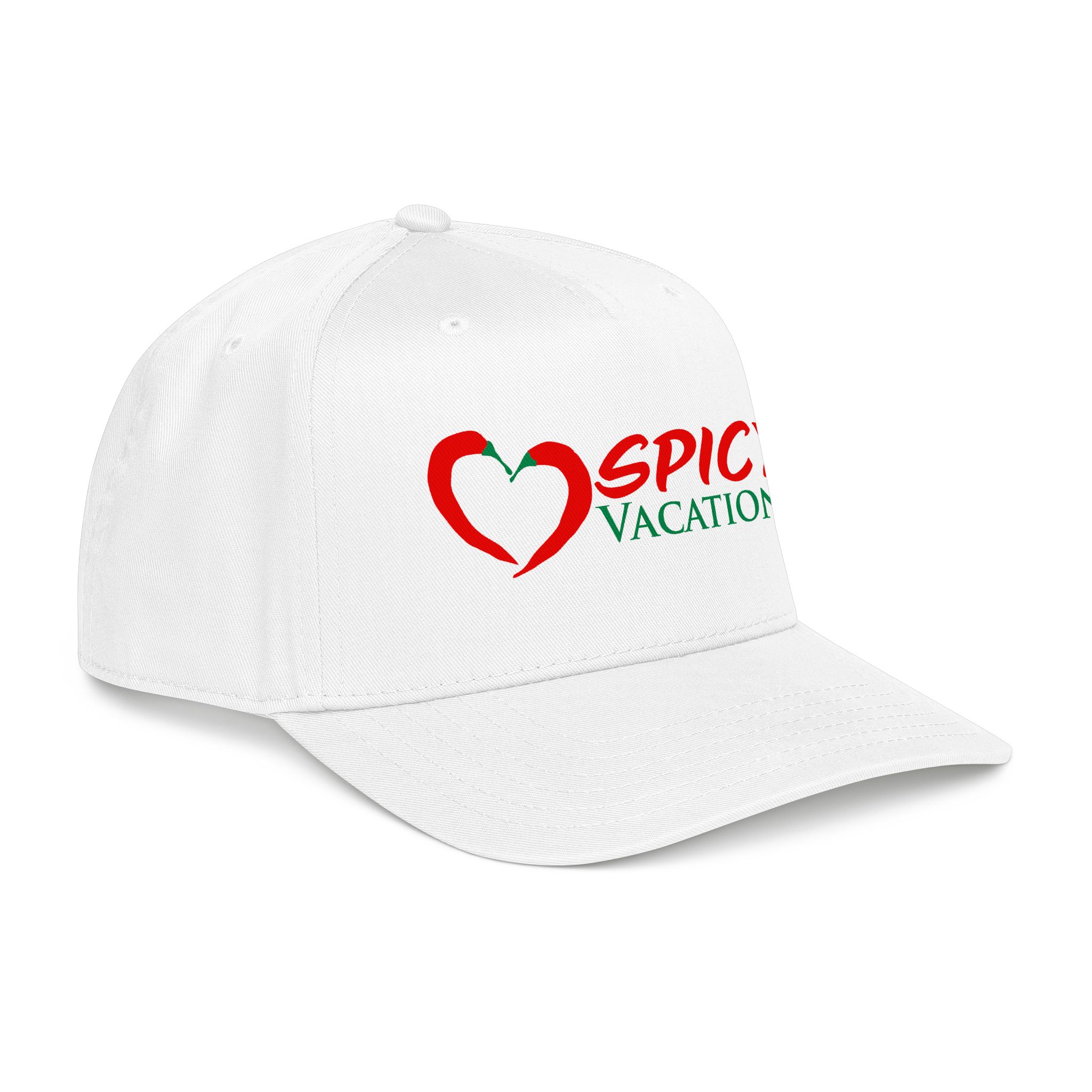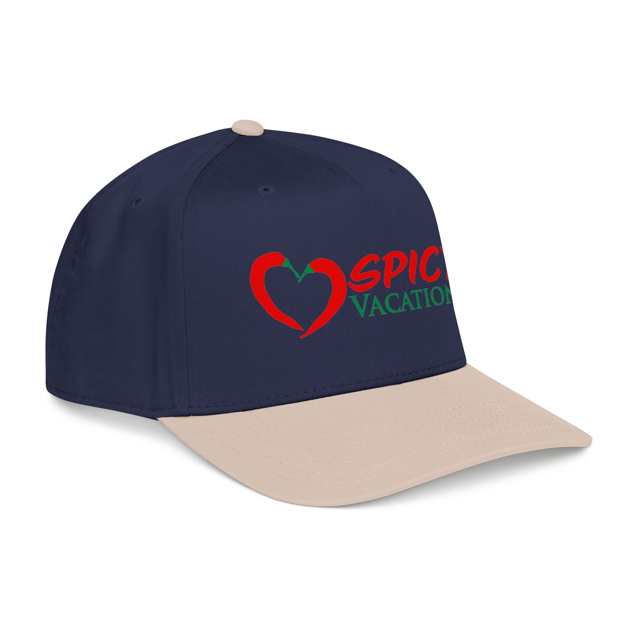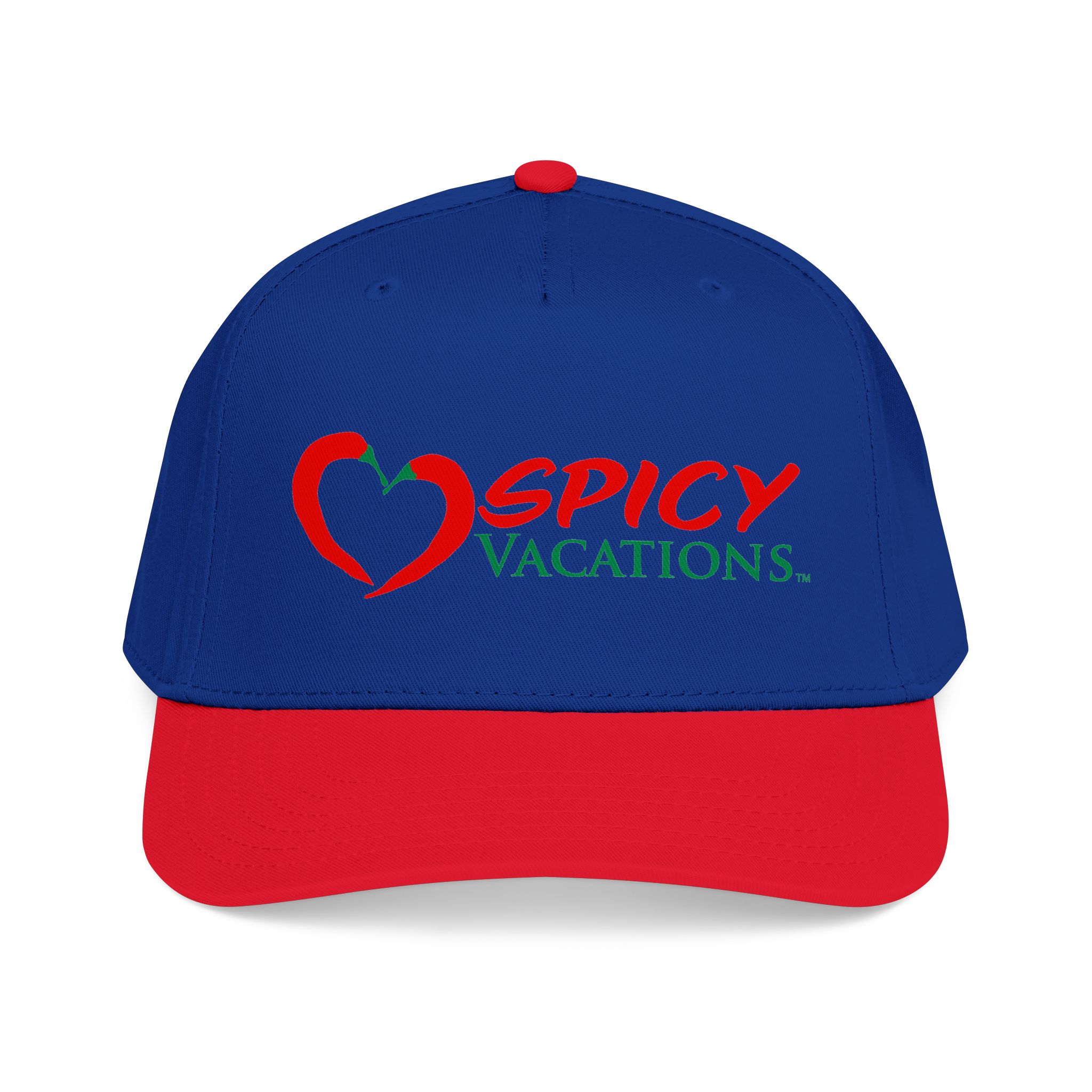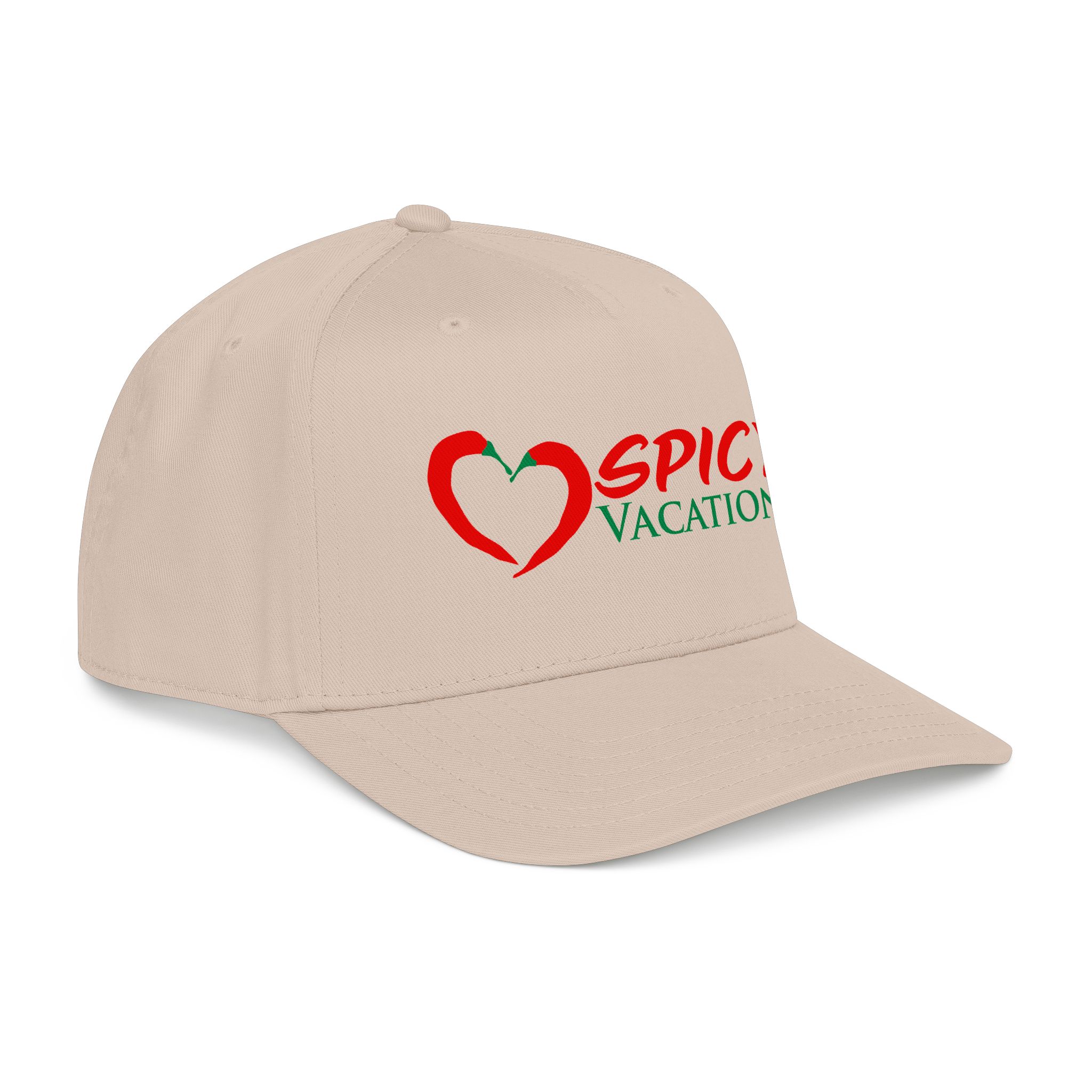 A matching fabric undervisor and sweatband give it a polished, intentional look, while the adjustable snap closure makes it easy to go from daytime adventures to late-night shenanigans. Six sewn eyelets keep things breathable when the sun’s out, the drinks are flowing, and the vibes are unmistakably Spicy Vacations.