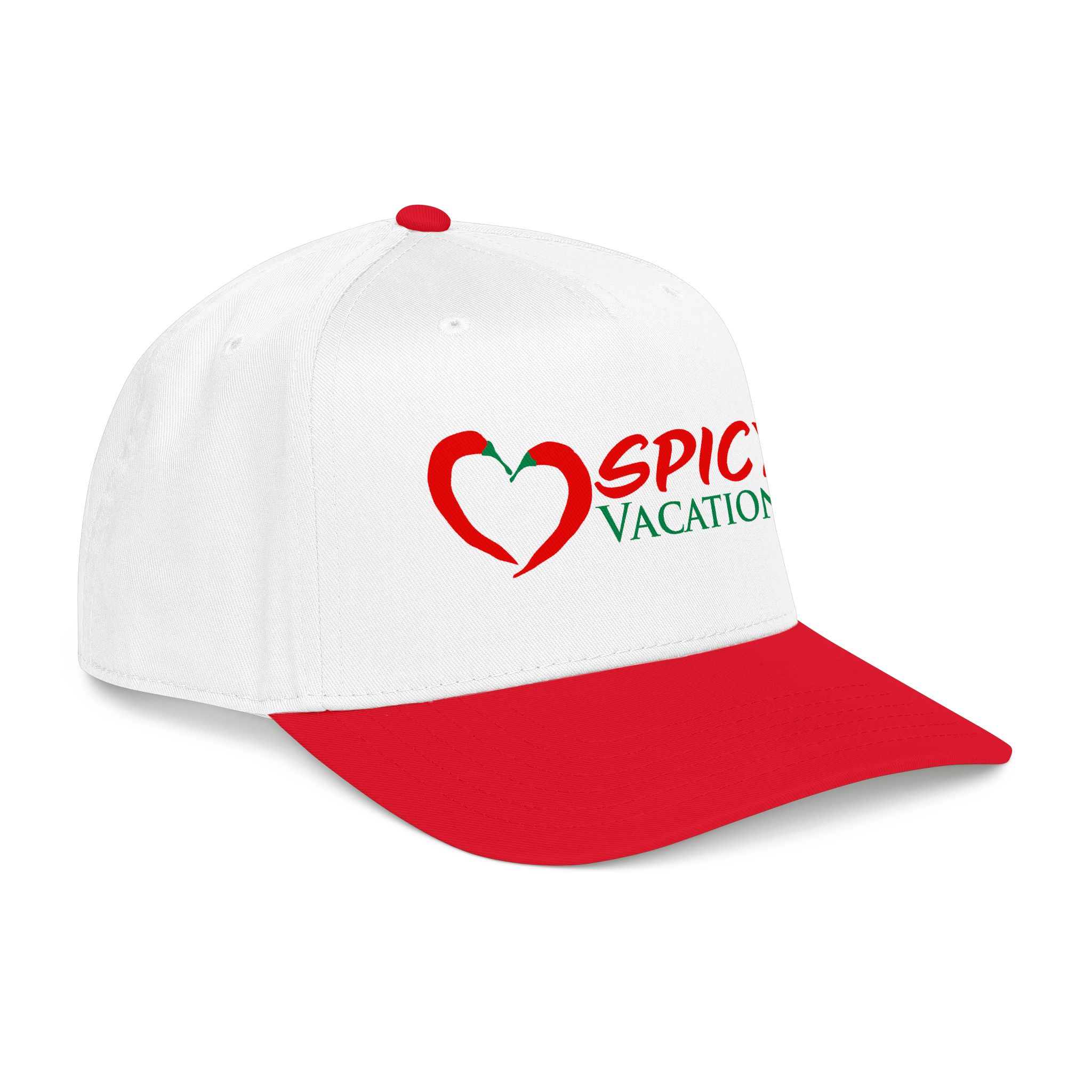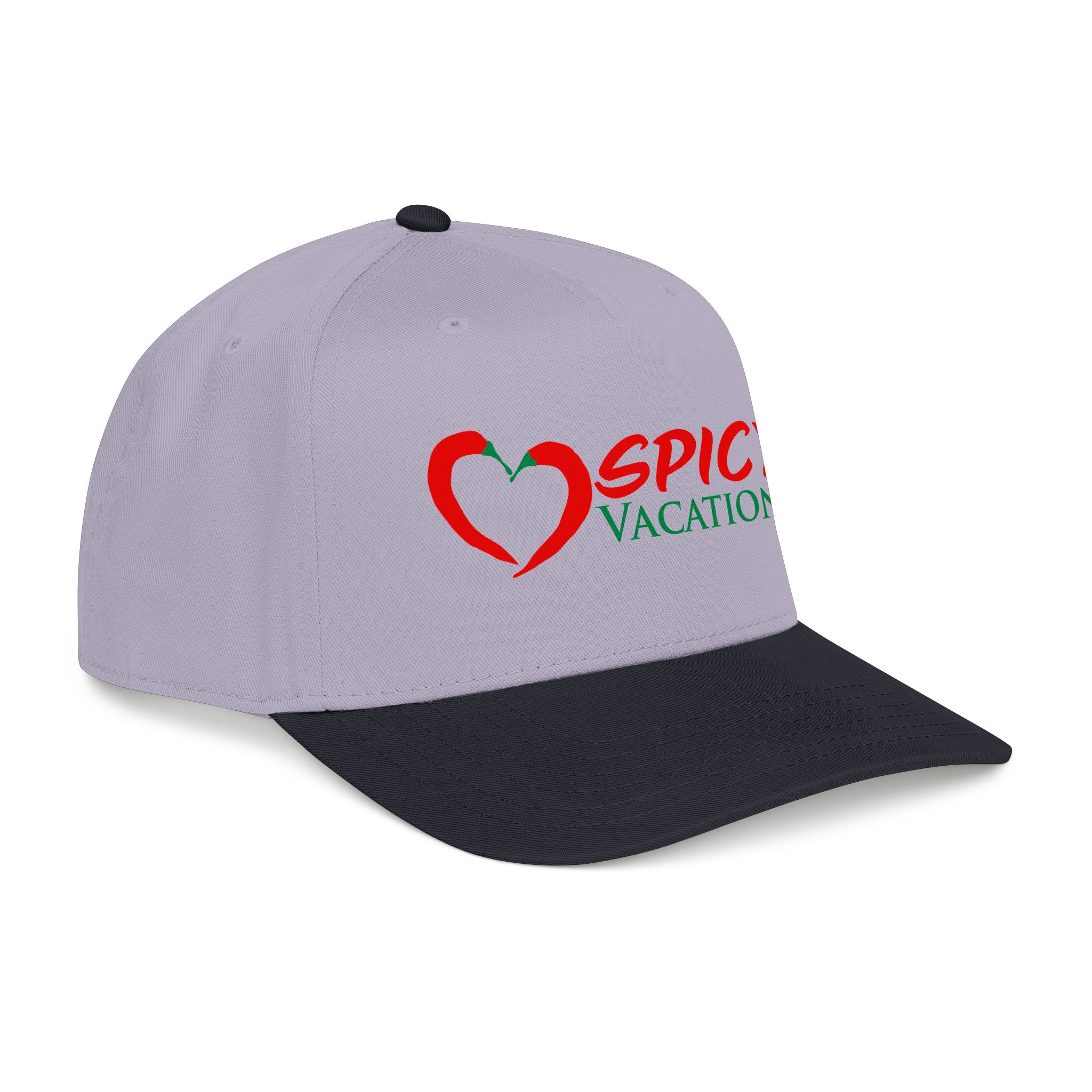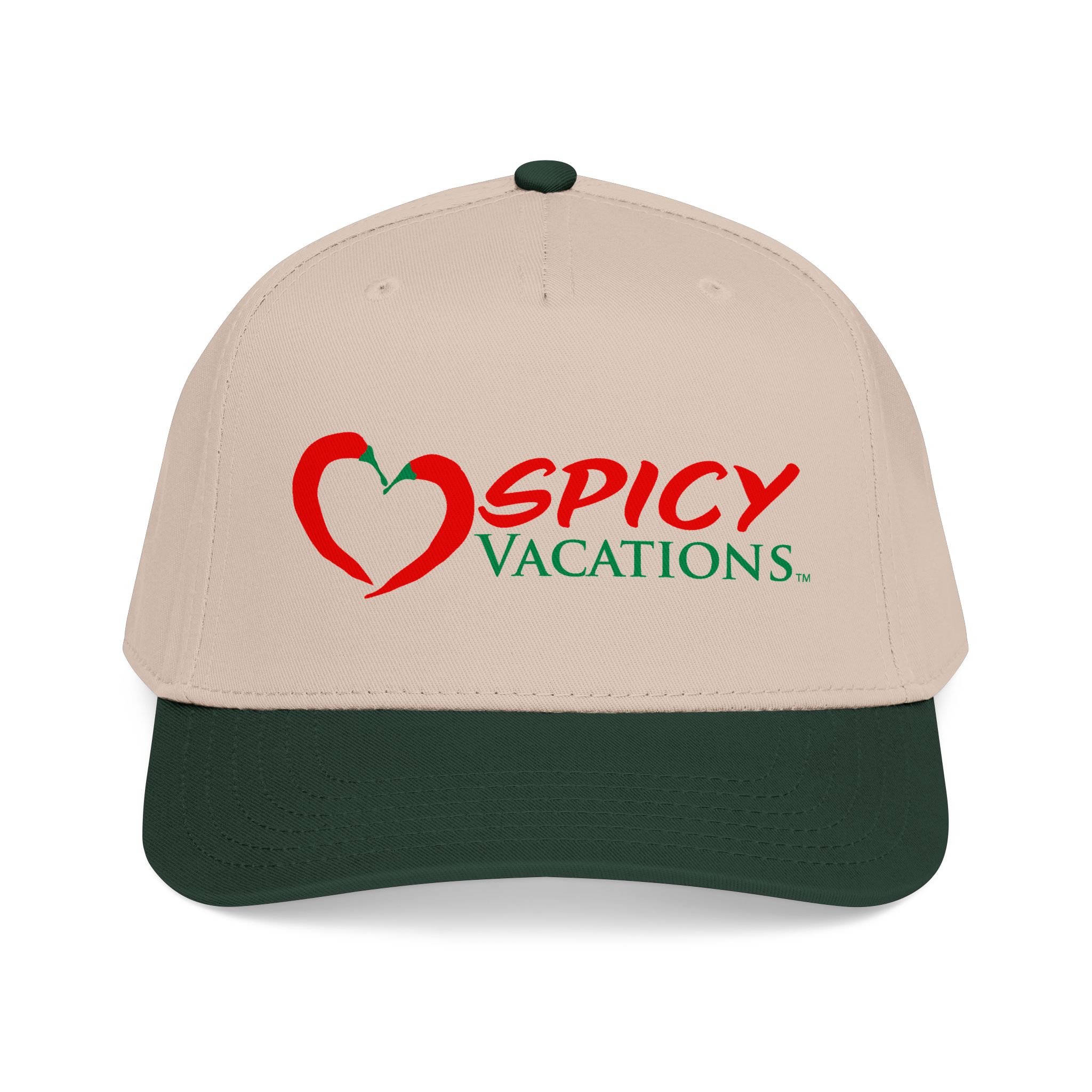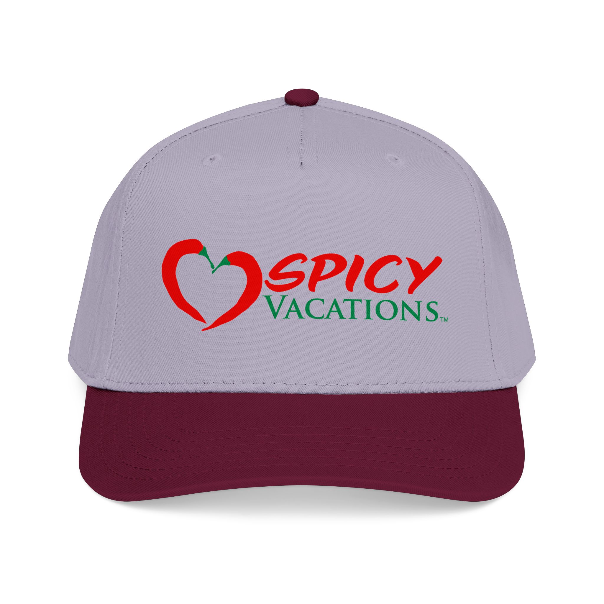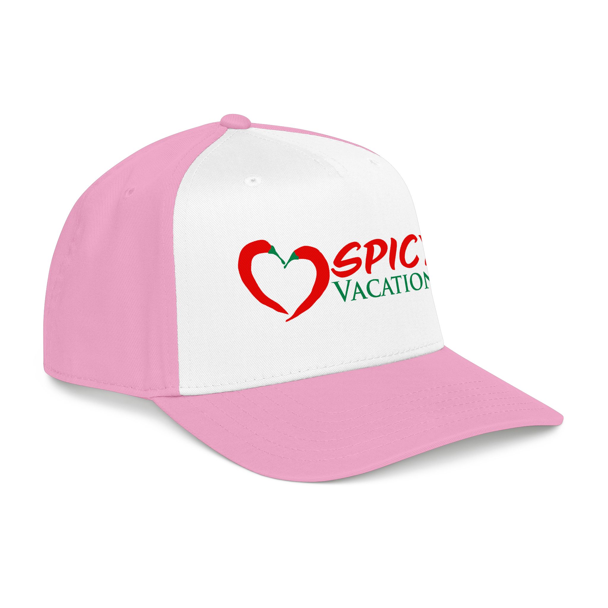 A matching fabric undervisor and sweatband give it a polished, intentional look, while the adjustable snap closure makes it easy to go from daytime adventures to late-night shenanigans. Six sewn eyelets keep things breathable when the sun’s out, the drinks are flowing, and the vibes are unmistakably Spicy Vacations.