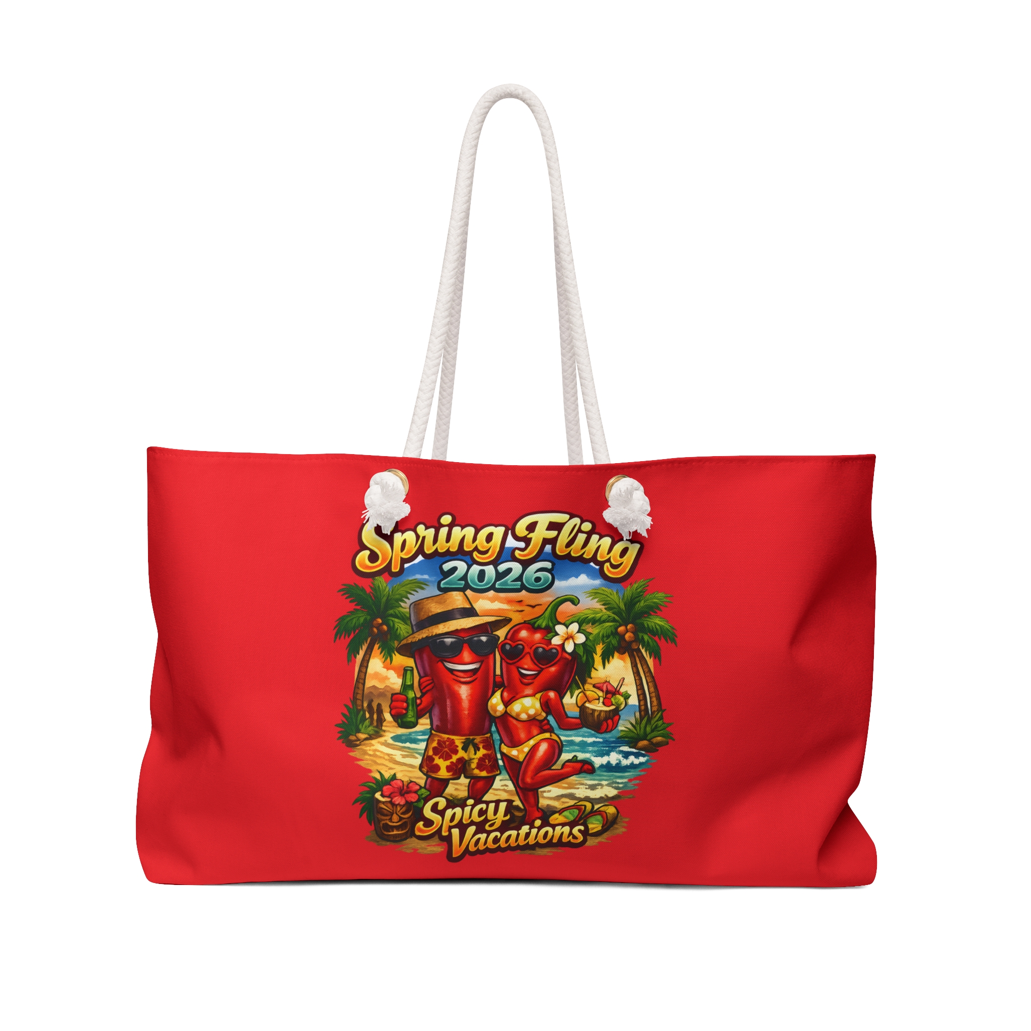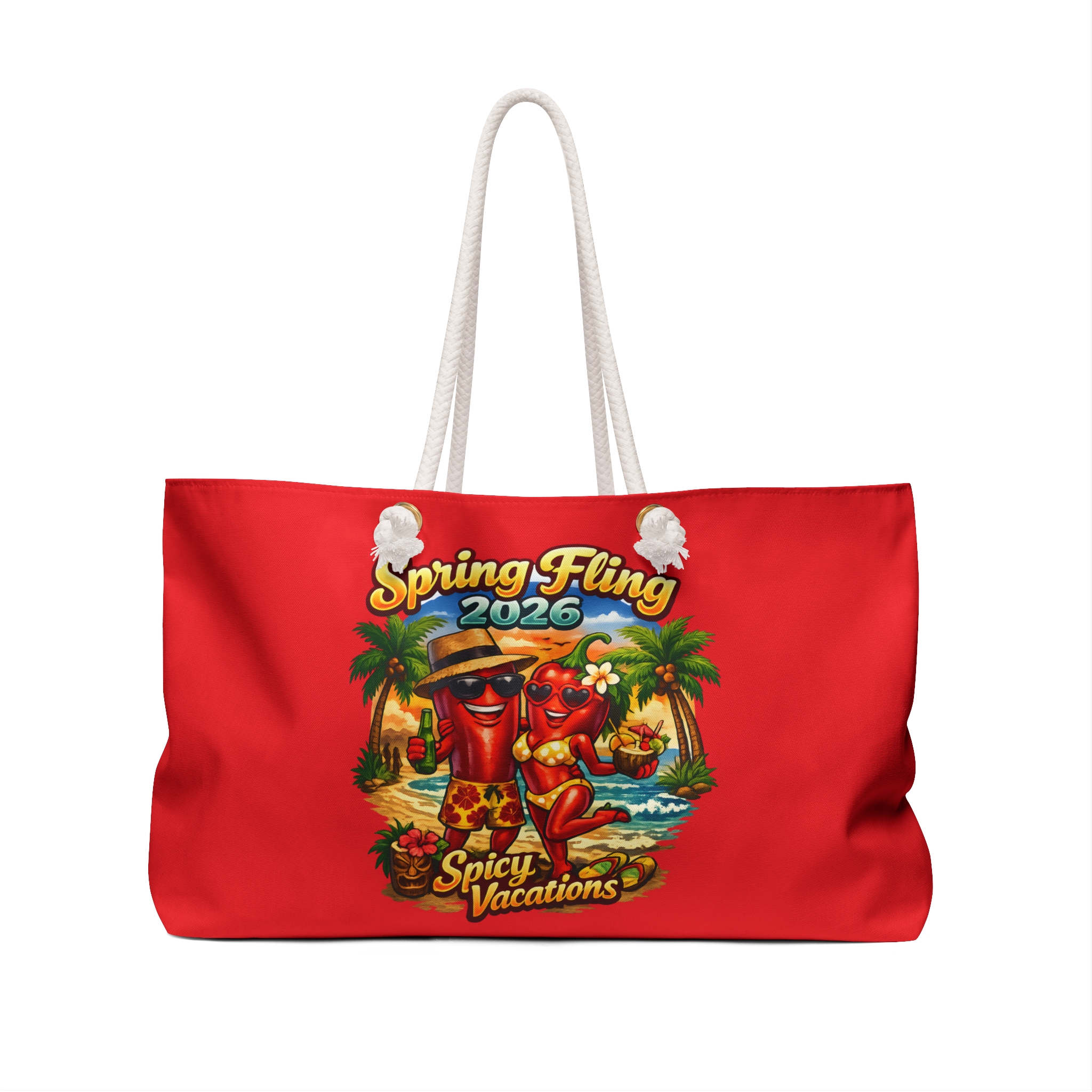Bright, roomy, and ready for adventure, this weekender bag is perfect for sun-soaked escapes and playful beach getaways. The vibrant red exterior pops with a flirty tropical print—sunglasses, palm trees, and retro ‘Spring Fling 2026’ vibes—bringing instant vacation energy wherever you go. Inside, a soft cream lining keeps your essentials organized, while the structured T-bottom makes packing (and unpacking) a breeze. Long cream rope handles slide comfortably over your shoulder through gold-tone grommets, adding a touch of polished contrast. Made from durable spun polyester, the print stays bold and wrinkle-free, no matter how wild your getaway. Spacious and sturdy, this bag carries towels, layers, snacks, and souvenirs with ease—perfect for spring break, island weekends, or any sexy, colorful adventure.